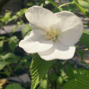 🤍🤍🤍💚💚 おはようございます😊 白山吹が咲いていました 昔小さい頃、キイチゴの実を食べましたがこれがその木てしょうか??? 美味しかったな🥰🥰