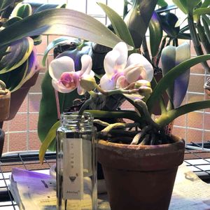 胡蝶蘭は、我が家に3種類ある。 『ミキスマイル』 『マザーチーク』 もう一つは、小難しい品種名・原種の胡蝶蘭。 この3種類… 原種の胡蝶蘭は開花株を迎え、 その後ふたたび開花した。 ミキスマイルは 我が家に迎えてから、4〜5回開花している。 一方、 マザーチークは黙り込んでいた… マザーチークだけで3鉢あるのに、3鉢とも〜っ ( ;∀;)寡黙なマザーだわー。 また ミキスマイルに花芽らしきモノが上がってきた。 (`・ω・´)油断しちゃダメなのっ 今だにっ根だか花芽だか分からないっ‼︎ ( ;∀;)うふっ …けど。 この様子だと、きっと花芽だ〜っ♡ (*´ω`*) 水…あっ‼︎ ぬるま湯あげよう‼︎ 早く咲いてね〜早くっ早くっ‼︎ 胡蝶蘭たちは整列し、 浴室でシャワーを浴びていた。 (´・ω・`)どうしてかなぁ⁈ ミキスマイルは何度も花芽上げてくれるのに。 品種の特性なのかなぁ マザーたちは花芽がつかな… (`・ω・´)んっ⁈ これは…もしかして…? 3人のマザーたちの足元を見た。 ( ゚д゚)3人とも、花芽…⁈ (*´ω`*)うひゃ〜っ‼︎ 花芽っ花芽っ‼︎ 花芽だ〜っ‼︎ 欲張りは、思った。 両種とも…一緒に咲いたら嬉しいなぁ♡ ミキスマイルの開花の方が早いかしら〜っ⁈ 私は、浮かれていた。 んっ…… ((((;゚Д゚)))))))あ〜〜〜っ‼︎ なんて事なのっ⁈ なんとっ 浴室でシャワー持って、はしゃいでいたら… シャワーホースでっ ミキスマイルの花芽を折ってしまった〜‼︎ ( ;∀;)ごめんね〜っ 株に負担がかからないようにと、 折ってしまった花芽をカット。 また花芽上げてくれるかしら… 胡蝶蘭の花言葉ー。 『幸せが、飛んでくる』 折ってしまったけど 『幸せが、訪れる』 ( ゚д゚)…本当だー。 数日後、 ミキスマイルの新しい花芽が現れた‼︎ (*´ω`*)ありがとうねー。 もしかしたら 同時開花も、あるかもしれない‼︎ 外出自粛。 加えて花粉症の季節も訪れる。 胡蝶蘭の花粉飛散は、相当少ないそうだ。 直射日光を嫌い、カーテン越しの光を好む。 室内で楽しませてくれる。 今まで育ててきた植物と栽培方法も違い、 興味深い…‼︎ まだ開花は先ー。 開花したら 今の、この状況が変わるかな…⁈ ニョロニョロと伸びたマザーチークの花芽が、 一筋縄ではいかない今の状況とリンクするー。 願わずにはいられない。 ( ゚д゚)アナタの花言葉は… (*´ω`*)頼んだよ〜‼︎ 皆さんの元にも 幸せが訪れますように。 どうか 今の状況が良い方向に、変わっていきますように。 お願いねー。 花芽、折らないように気を付けますから〜っ‼︎ ( ;∀;) 今年も… Σよろしくお願いしますー!!! 🌿 leaf 🌿