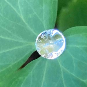 雨が降りの楽しみ🎶 裏庭で雨雫探し💧 ブルーベリーの葉っぱに ガラス玉のようなコロコロ雫ちゃん