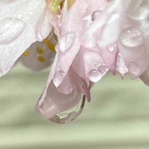 今年 新たに我が家の庭に仲間入りした 啓翁サクラ🌸 キラキラ✨雫💧が綺麗