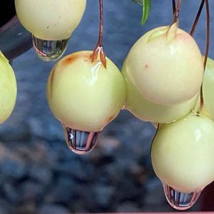 クランベリーの実に 雨上がりの雫ちゃん✨キラリ🌟 今にも落ちそう🤣