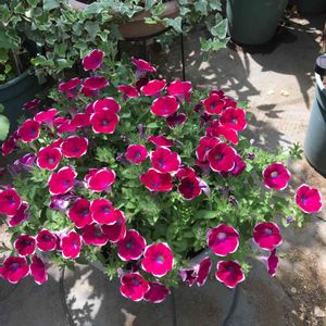 我が家の今年のペチュニア大集合❣️ なかなか全部が満開に揃うことが難しくって😅 どれかが切り戻し中で丸坊主なことが多いので ちょうど皆さん勢揃いで並んでいただいてパチリ✨ 向こうのラズベリージャムとブルーベリージャムは 3週間前に2度目の切り戻し、そして復活❣️ このあと、一番手前のあずきフラッペさんを切り戻ししました✂️ そして……… あとから気づいたのは、ブルームーンさん💙 すでに1週間前に切り戻ししてまだ丸坊主状態…… 仲間入りを忘れてました😅 5つ全部が満開は……… もっと難しい😅🤚