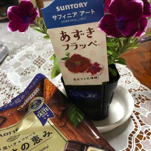 SUNTORYさんのサフィニアアート あずきフラッペ 美味しそうな名前につられてお持ち帰り〜💦