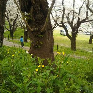 桜🌸前線を追いかけて~~ノゲシと桜🌸です。桜の幹も実に太く立派でした。