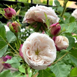 Mme. Alfred de Rougemont マダム アルフレッド ルージュモン 透き通るような淡〜いピンクの花が咲きます💓 四季咲きのオールドローズ✨ コンパクトなので狭い空間にピッタリです! 枝が細くて棘も少ない方かな… 香りも素晴らしい💕 たまにおブスで咲きますが、それも愛嬌😂