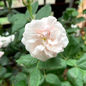 マダム・アルフレッド・ドゥ・ルージュモン (Mme. Alfled Rougemont) 抱え咲きで中はクォーター。 中心にはボタンアイ。 四季咲きのオールドローズで強香🌸 透き通るような花色が可愛いバラです。