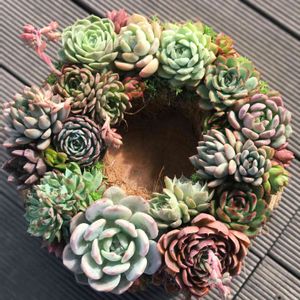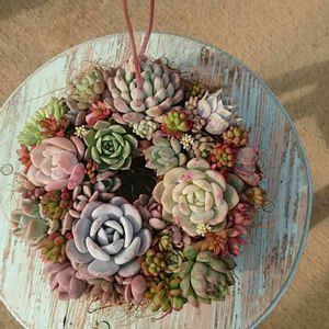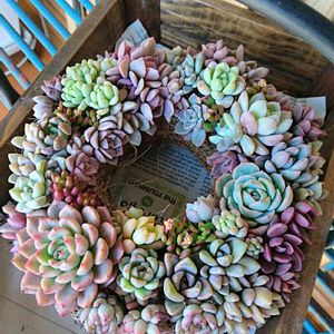 農ランドで開催された 『寄せコン』に昨日参加してきました! 私はエケベリアに個数制限のない エケフリーコースのリース作りをしてきました✨ 好きな子達ばっかり詰め込んだので・・・ やっぱりこんな淡い色味になるよね~(笑) 土台からのリース作りで、土台にかなり手こずりましたが、無事に出来ました💕 とっても楽しい時間でした✨