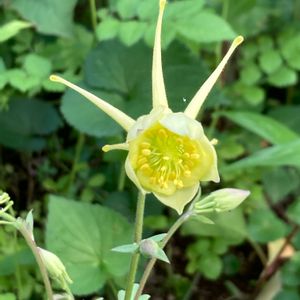 初めて今年咲くオダマキ。 さて、何色だっけ? 珍しい、といただいた黄色かなぁ? 咲くまでわからないことが よくあります😂