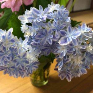 紫陽花 '万華鏡' 思わぬ早さで過ぎ去った梅雨 今年の万華鏡の最期の花となりました 最期のお花は今年唯一の摘花 水差しと涼しい室内で少しでも長く楽しもうと思います そして本体は来年のための準備へ 1年かけて育て、毎シーズン彩りを楽しむ なんて贅沢なんでしょうか あっ今なんかちょっとかっこいい事言った!(● ˃̶͈̀ロ˂̶͈́)੭ꠥ⁾⁾ハジカシー