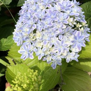 島根の万華鏡、また今年も咲き始めました😃🩵心踊るブルーに癒されます😊 晴れていても夕方から雷がなり大雨、そんな中にも健気に咲いていました☔️💦 ネットから。 ジャパンフラワーセレクションで最優秀賞受賞の経歴もある万華鏡。「島根県アジサイ研究会」によって開発されたハイドランジアで、2012年から流通するようになりました。 6月~7月ごろになると淡い色合いの花を咲かせ、八重咲きのきらびやかな花はまるで万華鏡のようです。 かつては生産量が少ないことから希少性が高く、関西のみで流通していましたが、現在では全国で入手できる人気品種のひとつです。