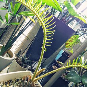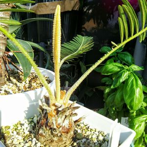 kemuriradioさんの所からやって来たシャム ソテツ。 タイ シルバー♪ (^-^)/ 古い葉をカットして植え替えたら、新葉が3枚‼ 細かい毛が生え、シルバーと言うより今はゴールド ですね。