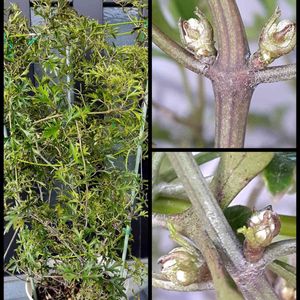 クレマチス カートマニージョー 昨年の春にGSで見てからほしくて探したお花です 花が終わったのを見つけてお連れしました 芽がぐんぐん伸びて 節々から何やら花芽のようなものがたくさん出てきました 無事に咲いてくれますように