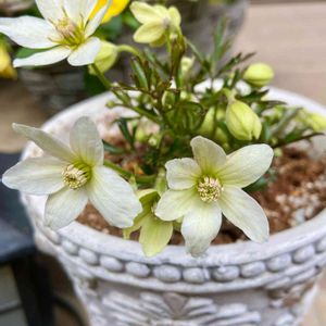 🤍クレマチス カートマニージョー🤍 前から欲しいなぁ💕と思っていたお花 ホムセンでGetしました(`✪︎ω✪︎´)👍✨ 明日ハンギングに吊るす予定🤸♀️ (*´艸`)楽しみ〜💕