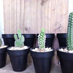 リメ鉢5個。リメ缶1個。 同時進行で塗り塗り...。ペタペタ...。😊
