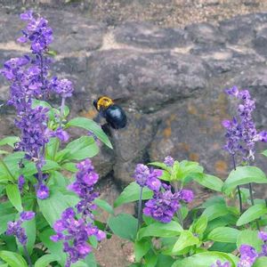 第一陣のラベンダー収穫後、第二陣は蜂🐝さんたちにお花を開放して... この暑さにも関わらずくまんばち🐝やアシナガバチが忙しく蜜集めに🍯 毎年大盛況にヒヤヒヤしながら脇を通り過ぎるのでした🤣 大きくなりすぎたので、花が終わったら強めに剪定しなきゃね