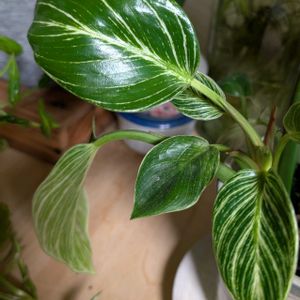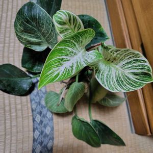 暑い中元気なフィロデンドロン・バーキンさん👜です。 冬に真っ白葉っぱばっかり出してましたが、しましまがはいった葉っぱ🌿が復活しました🥰。 夏になったので、ベランダに出してあげました。 昼間☀️は日光・夜🌠はベランダを吹き荒れる涼しい風🌬️を満喫しているようです。 新しく🆕✨出た葉っぱ🌿が大きくなってきました。 もともとはダイソー産のこのコはもしかして巨大化する気でしょうか?