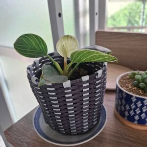 観葉植物をスリット鉢に 植え替えました そのままお部屋に置くには どうもなぁと思って 鉢カバーを作りました 数年前に大流行した エコクラフト(紙バンド手芸) お店で鉢カバー探して みたけどぴったりのが 見当たらず 材料あるし作っちゃえ的な 感じです