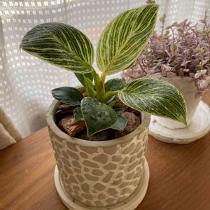 友人からの頂き物 おしゃれ爽やかマダラ模様 タグにはフィロデンドロンとしか書いてなかったけど多分バーキン