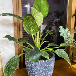 こんばんは🌃 我が家の植物部屋のお友達を 少しご紹介いたします。 フィロデンドロンバーキン こちらはホームセンター生まれで フィロデンドロンという表記だけでしたが、模様の入り方が バーキンであろう!と思ってるところです(笑) 冬ということもあり、新芽がここからなかなか膨らみません...! 寒すぎないように気をつけてるんだけどなぁ(´°‐°`) フィロデンドロンシルバーメタル こちらはダイソー生まれ! 小さな鉢で徒長してたのを見て助けたくなっちゃった子...! 新芽も広がったので、我が家の環境には慣れてきた模様。 シンゴニウムネオンさん こちらは別のホームセンター生まれ 緑がいっぱいの植物部屋に ピンクの彩りを添えてくれます。 生育期入ったらもっと葉っぱが増えてくれるかな?? こうして我が家の緑化運動が 私一人によりどんどん推進されてます。 植物ホント大好きだー!!