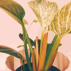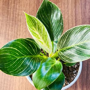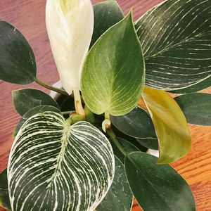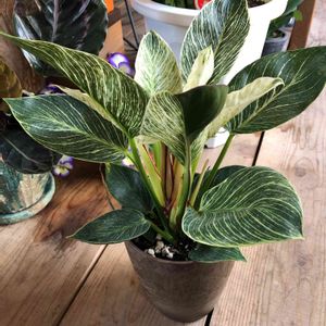 繊細な斑入りが美しい! フィロデンドロン バーキンです✨ 新芽はとても白く、成長するにつれて 細かい線状の白斑からグリーンの葉へ 変化していきます🌿 葉色の変化が楽しめる冬のお部屋の インテリアグリーンとしておすすめです☃️❤︎