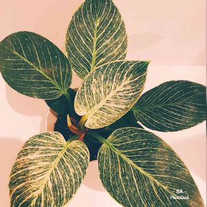 先程のフィロデンドロン バーキンの 葉をアップで撮ってみました📷。* この繊細な斑の入り方が とても綺麗です!