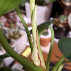 ようやく斑入りの葉を出してくれたダイソー産のフィロデンドロン・バーキン。 6月に投稿してから緑の葉しか出てきませんでした😅けどそれはそれで綺麗だったので良いかなと😊 新芽の頭がもう見えているのでどのくらい斑が入っているか、開くのが楽しみですね🤭