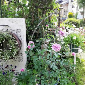 先日の雨で寂しくなったお庭に ホッと一息つかせてくれる ビエドゥと 今年お迎えした クリスティアーナです🥰 後ろは クレマチス アラーナ