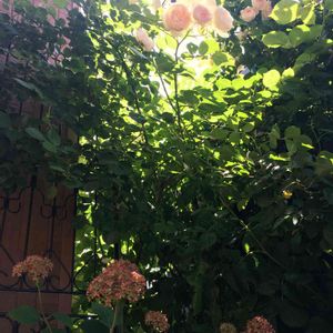 アナベルとバラ 誘引が下手だけど 自己満足してます😊✨