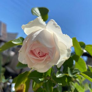 近所の昔ながらのレトロ感プンプンの喫茶店。この時期になると、お店が見えなくなるほどたくさんの薔薇に覆われます。 真っ白のようで、うっすらピンクが入っています。 クリスティアーナ🌹