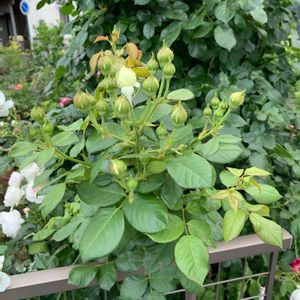 クリスティアーナも開き始めました! 下から立派なシュートが沢山出てきて、早くフェンスに這わせたい(。♡‿♡。)