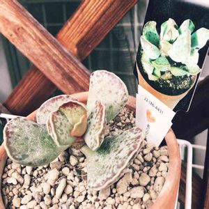 アドロミスクス「天錦章」 なにやら にょきにょき伸びてますよ(*^艸^*) 花芽かな~♪ 多肉さんはほぼみんな、お外に出ました!✨ 直射日光に、頑張って慣れてね💓