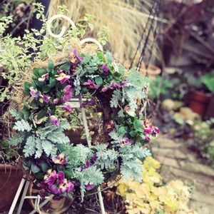 ビオラ、葉牡丹、シルバーレースのリース💕花屋さんで見たの参考に作ってみた❣️