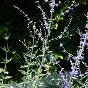 ペロブスキャ ふた冬を越して株が充実してきました シルバー系の茎と葉に水色の花が涼しげ