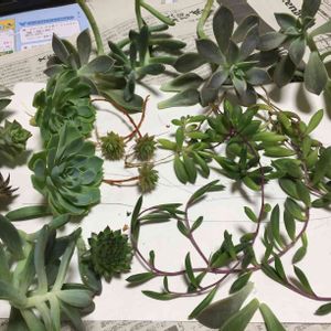 ゲットしたものたち〜。 名前はほぼ知らない、らしい苦笑。 1週間前にちょうど整理したものがあるらしく、それは根が出てたー。 葉っぱ取れてるのも赤ちゃんみたいのがついてて生命力すごい!