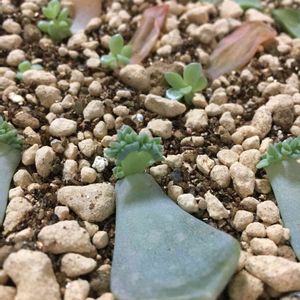 多肉の赤ちゃん♡ なんか、ブロッコリーみたいな生え方してるけど大丈夫😂? 茎の形が絶対おかしいんだけど。。😂 成長が楽しみです😂