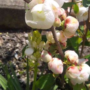 クサボケの下にスパニッシュ・ブルーベルが咲いてます。