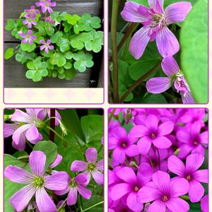 🏷️ピンクの日🏷️ピンクワールドへようこそ カタバミって小さい花だけど、よく見ると花びらに筋が入ったり、色のグラデーションなど繊細な感じですよね😍 右上は、八重咲きでしょうか、八重咲きサツキの近くで見つけましたよ👀💕