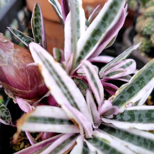 Drimiopsis sp. kalkfontein sekhukhuneland よく増えるらしいドリミオプシス。今年花咲いた時に一個だけ結実して播いたけど、まだ発芽してない。と、いうか、多分発芽しない予感😅 カンペルスルスみたいにたわわに実がなって欲しいけど、株数が増えて球根が充実してくるまでは分球で頑張ってもらおう。 この子のお気に入りポイントは、この地面に沿って明るいグリーンベースの中太葉にマダラ模様が全体に入っている所。 いや、マダラ模様自体は、まー、ありきたりなんだけど、この地を這う中太葉でこの柄は好み。この葉の色合いは豹紋よりは少し濃くてカンペルスルスよりは少し明るい感じ。 もしかしたら株が充実してきたらカンペルスルスみたいに葉が立ち上がる可能性もあるけど、とりあえず今年入手したばかりなので今後の変化が楽しみなドリミオプシス。 まだ投稿してない球根がいっぱいあるから、こんな感じでお気に入りポイント含めて書いていこうと思います。 言語化するとそのお気に入りポイントがより魅力的に感じるから不思議。 そして、文章考える時にその植物を改めてよく見るから新たな気付きがあったりして楽しい。 あ、書き忘れてた。葉裏は無地の明るいグリーンです。 ケープバルブは品種によって葉表は似てても葉裏が違うとかあるから面白い。