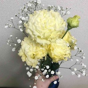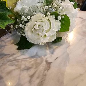 旅先のレストラン(淡路島)のエレガントなフラワーアレンジ。 八重咲フリルのトルコキキョウが、まるでバラ🌹の様な豪華さ‼️