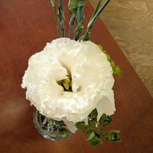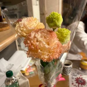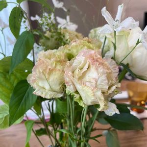 八重咲きのトルコキキョウが咲きました💚 チビ苗🌱でお迎えしてから、あまり大きくならず期待してなかったので、びっくりです❣️ 淡いグリーンに癒される〜🥰