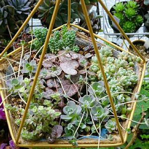 以前作った 100均アイデムを吊り鉢にアレンジした 寄せ植え 子持ち蓮華も目覚めたから モリモリになって来たよ➰😆