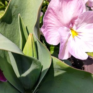 ピンクのビオラさん🩷✳️🌿 & チューリップも蕾が出来てました😊💕 今日は暖かい、少し暑い感じですね~😅🍀✨