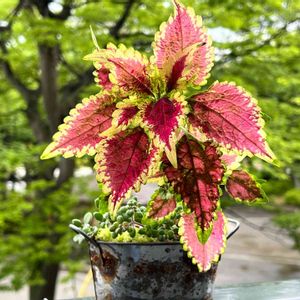 冬越ししたコリウスです。 晩秋に植え替えするとき、一か八かセダムの鉢にちょこんと挿し芽🌱して多分枯れるかな?と思っていたら、ちゃんと生きていてくれました♪ 嬉しい☺️ これから大きくなりそうです。