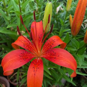 ユリ第8弾、スカシユリの赤黄色が咲きました。これはカペリと言う品種です。