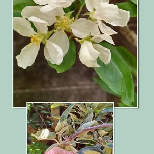 リンゴの花 去年1個🍎なったのを買ってきたのに 下の枝に これだけ咲きました。 🍎なるかどうか わかりません? 姫リンゴの近くに置いてます。