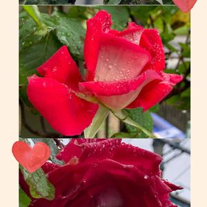 ☆庭のお花達☆ ❶バラ🌹・ラブ❤️ 先日picは、逆光の写真でした 今日は、雨降りで、色鮮やか! 雨粒と一緒に美しい😍 ❷アマリリス 一本の茎から違う方向へ向いて! 花後に株分けして、お嫁に出そう ❸オルラヤ 友達から頂いた1本からの 溢れ種があちこちの鉢から 出て、切り花にも使えて 楽しめています!