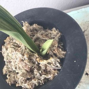 姑が捨てていた万年青を拾って水苔に巻いて育てていたら、新芽が出て来ました💕 赤い実が実るまで成長してくれたらいいな🙋🎵