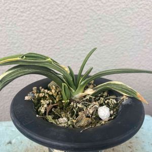 万年青(黄金錦) まだあるぞw こちらはそのお知り合いの方の余剰苗です。 その方がスペース確保したいので譲りたい、との事でしたので喜んでお受けしました😊 ちょっと葉が暴れてますが面白そうな芸です。 成長を楽しみたいと思います☺️