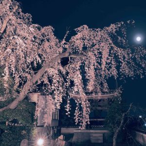 朧月夜と枝垂桜 千光寺
