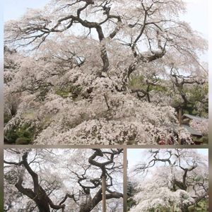 シダレザクラ(枝垂れ桜) 垂れ下がる枝に 花の房がついて 華やか 風の穏やかなこの日は 静かで 優雅な桜だった 桜の咲く この頃は 天気も 激しく変わる 春の嵐には どんなに 狂おしく 乱れるのかと 想像する 古木には 桜の精が いるように思える桜でした